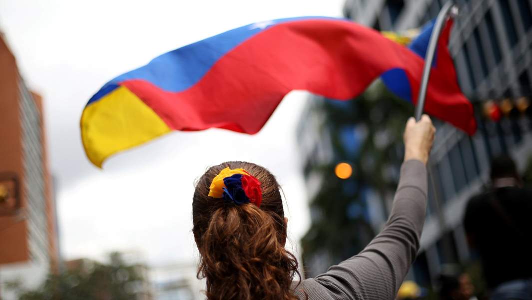 Сторонники лидера венесуэльской оппозиции и самопровозглашенного временного президента Хуана Гуайдо принимают участие в акции протеста против правительства президента Венесуэлы Николаса Мадуро в Каракасе, Венесуэла